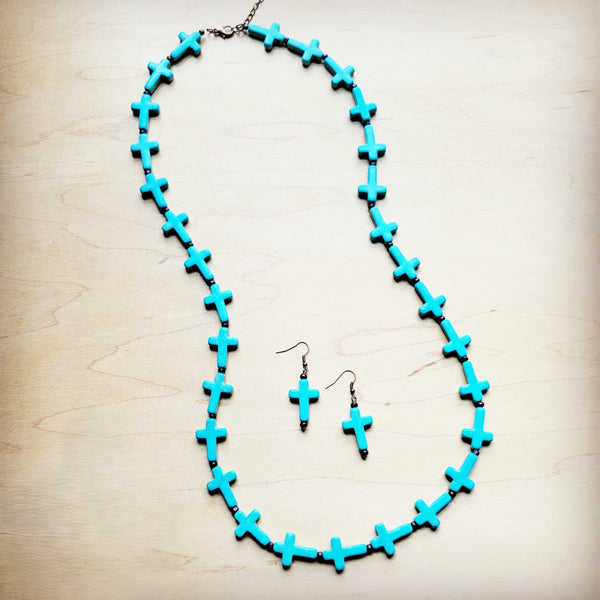 Enhance your boho western style with our Blue Turquoise Cross Earrings. These earrings are handmade with beautifully crafted wood and beads, giving them a unique and stylish look. Perfect for any occasion, these earrings will add a touch of elegance...