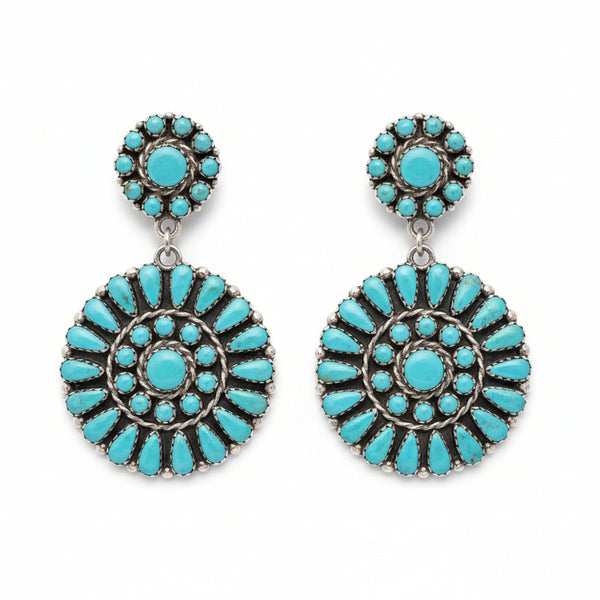 These earrings are sure to be a show stopper! - Genuine turquoise and sterling silver