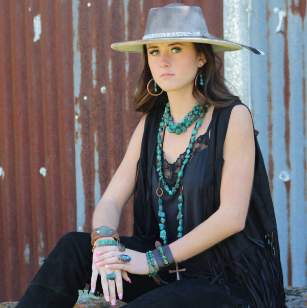 Expertly handcrafted with genuine Hubei Turquoise stones, these boho-inspired Copper Hoop Earrings add a touch of natural beauty to any outfit. The combination of turquoise and wood creates a unique and earthy look. Perfect for those looking to add a...