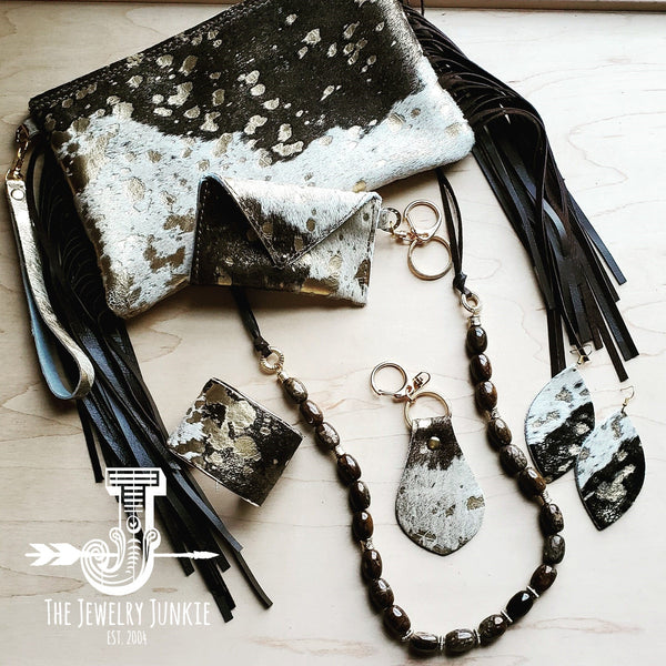 **Leather Oval Earring-Mixed Metallic Hair on Hide 200b