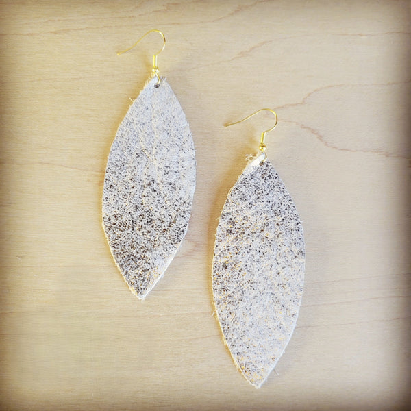 **Narrow Leather Oval Earrings-Heavy Metal White 210b