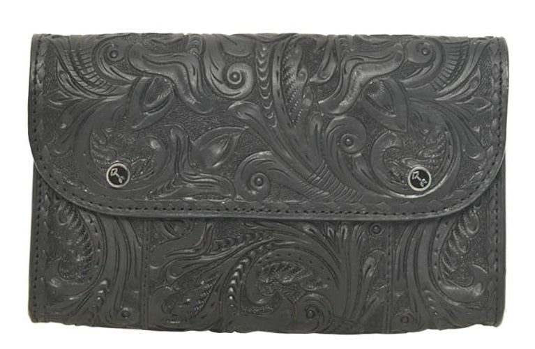 Comes in all black or tan with buckstitching. Loops on the back to connect to your belt and is great from wearing while your ride!