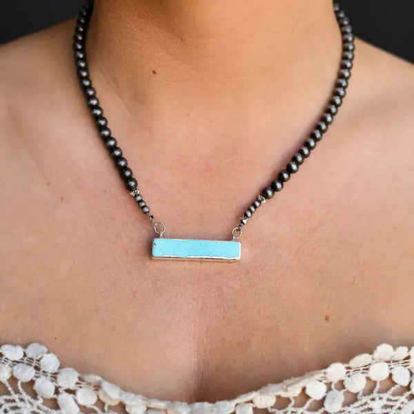 16" faux navajo pearl necklace with turquoise bar