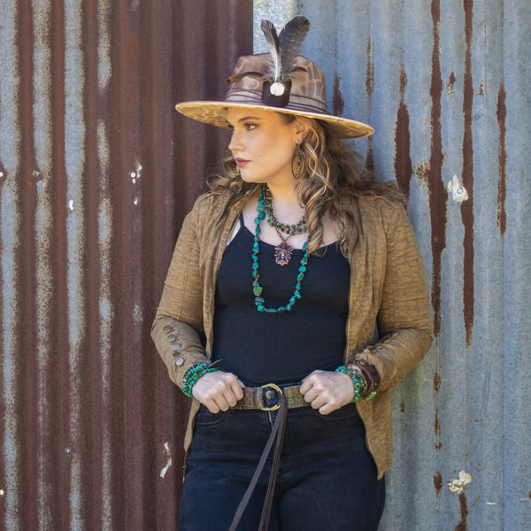 These stylish Copper Hoop Earrings feature African Turquoise beads for a unique western-inspired look. Crafted with high-quality materials, the durable hoops and beads guarantee long-lasting wear. Add a touch of boho flair to any outfit. Entire length is approx. 2.25"...